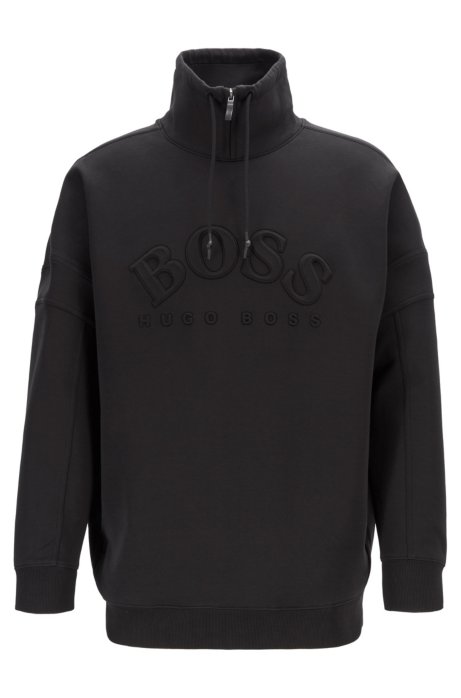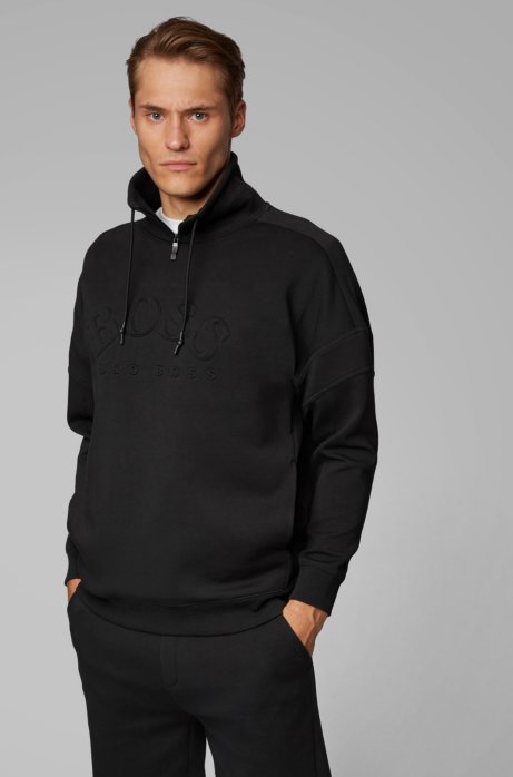 Boss Relaxed Fit Sweatshirt With Curved Logo And Drawstring Collar