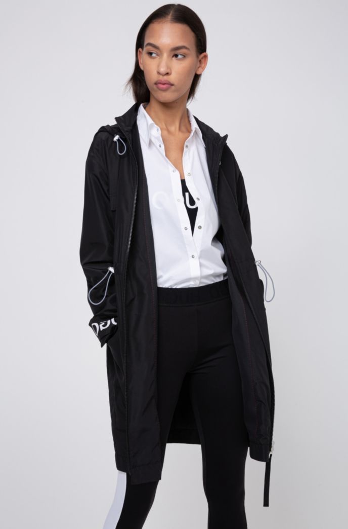 Hugo Relaxed Fit Parka With Logo Print Cuff Straps