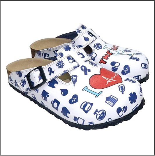 Amazon Com I Love The Life Themed Professional Comfy Hospital Nursing Clogs Mules Size 9 White Shoes