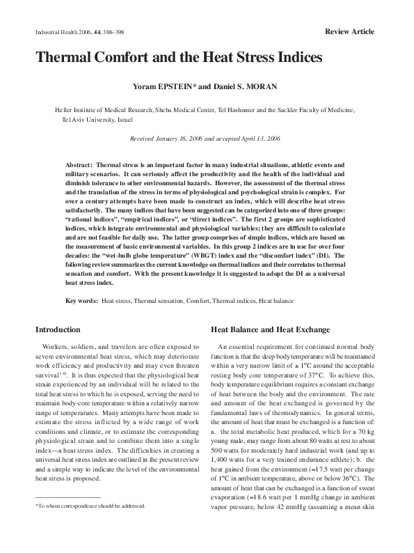 Pdf Thermal Comfort And The Heat Stress Indices Daniel Moran Academia Edu
