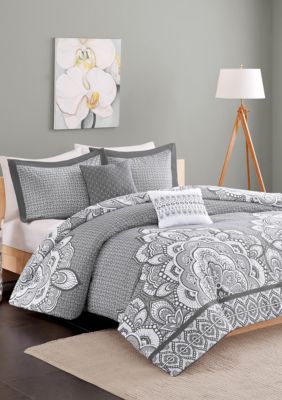 Amazon Com Intelligent Design Cozy Comforter Casual Damask Design Modern All Season Bedding Set With Matching Sham Decorative Pillow Full Queen Isabella Grey Home Kitchen
