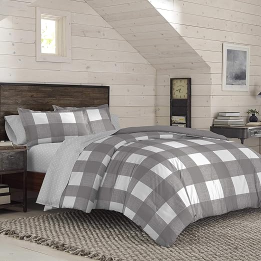 Amazon Com Izod Buffalo Plaid Set With Breathable Light Weight And All Season Super Soft And Hotel Quality Comforter With Machine Washable Twin Gray White Home Kitchen