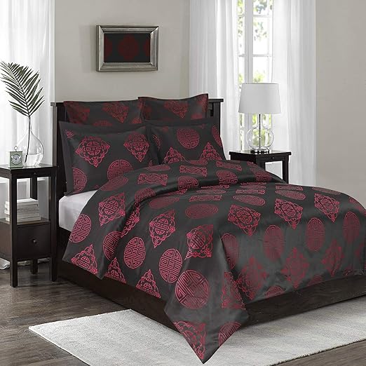 Amazon Com Hig 5 Piece Chinoiserie Chic Jacquard Comforter Set With Down Alternative Polyfilling Delicated Lightweight Bed In A Bag Year Round Use Comforter Bedding Set King Size Black Red Song Home Kitchen