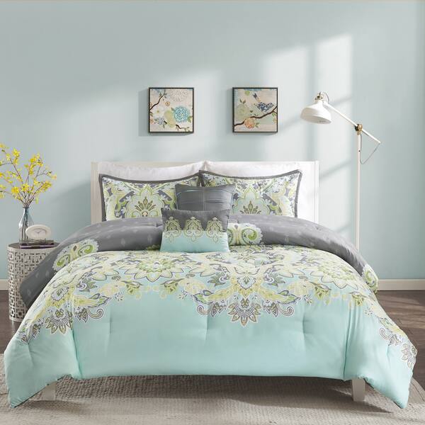 Amazon Com Avondale Manor Livia 5 Piece Comforter Set Queen Jade Green Home Kitchen