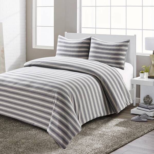 Shop Style Quarters Super Soft Shadow Stripe Jersey Comforter Set 3pcs Reversible In Grey And White Machine Washable Queen Size Overstock 23007810