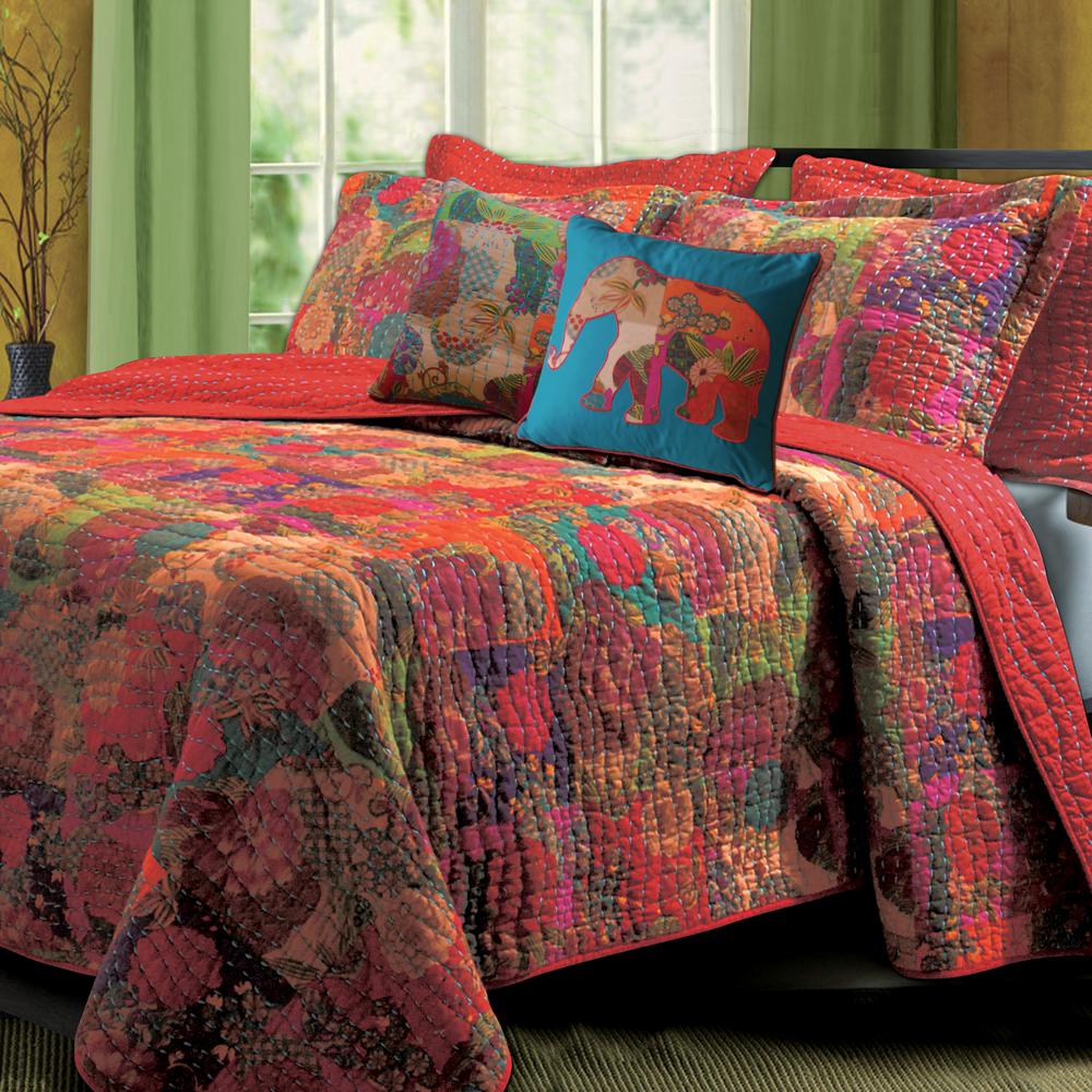 Amazon Com Greenland Home Jewel Quilt Set 5 Piece Full Queen Red Home Kitchen
