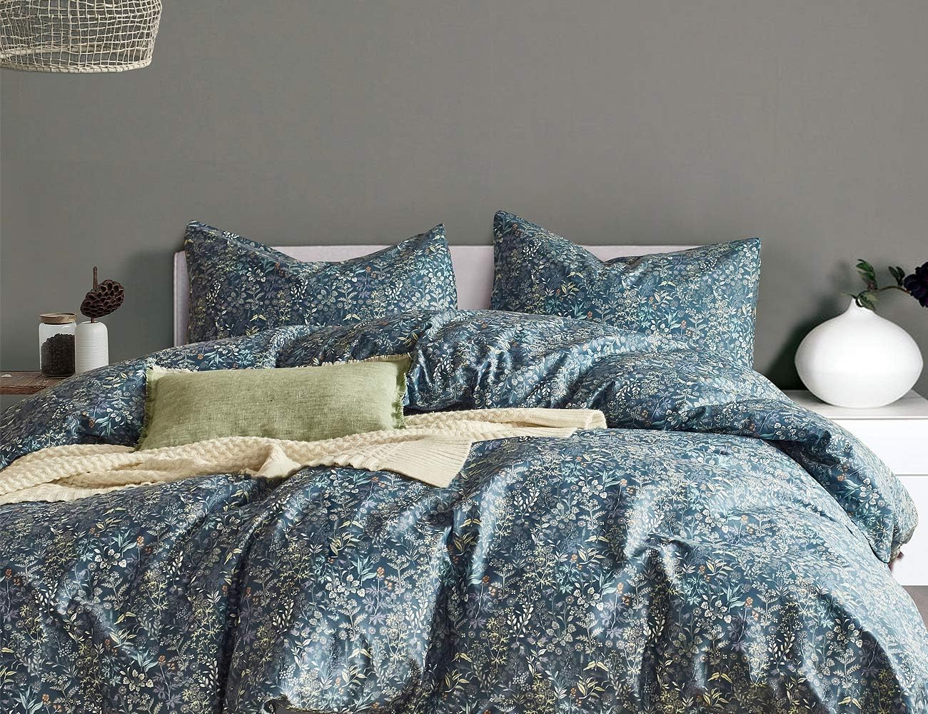 Amazon Com Opcloud King Duvet Cover Set Premium Cotton Luxury Soft Bedding Set 3pc 600 Thread Weed Plant Pattern Comfy Hypoallergenic Comforter Cover Home Kitchen