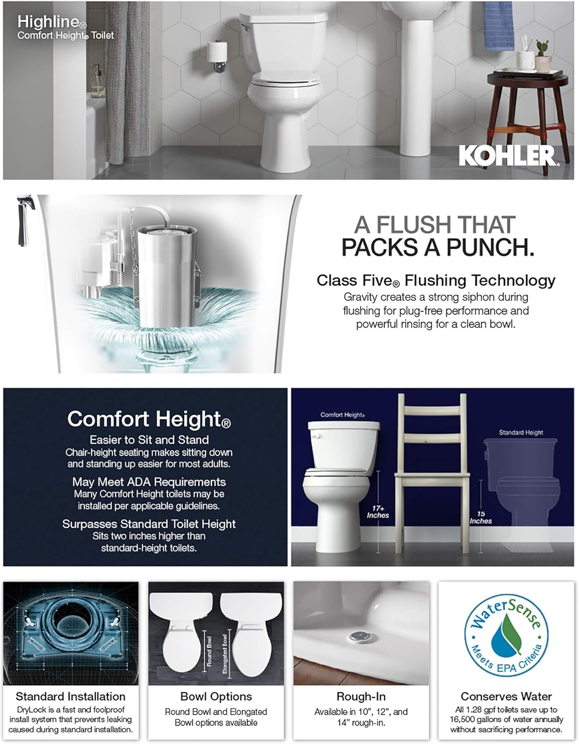 Kohler K 3889 Highline Comfort Height Elongated 1 28 Gpf Toilet Kohler