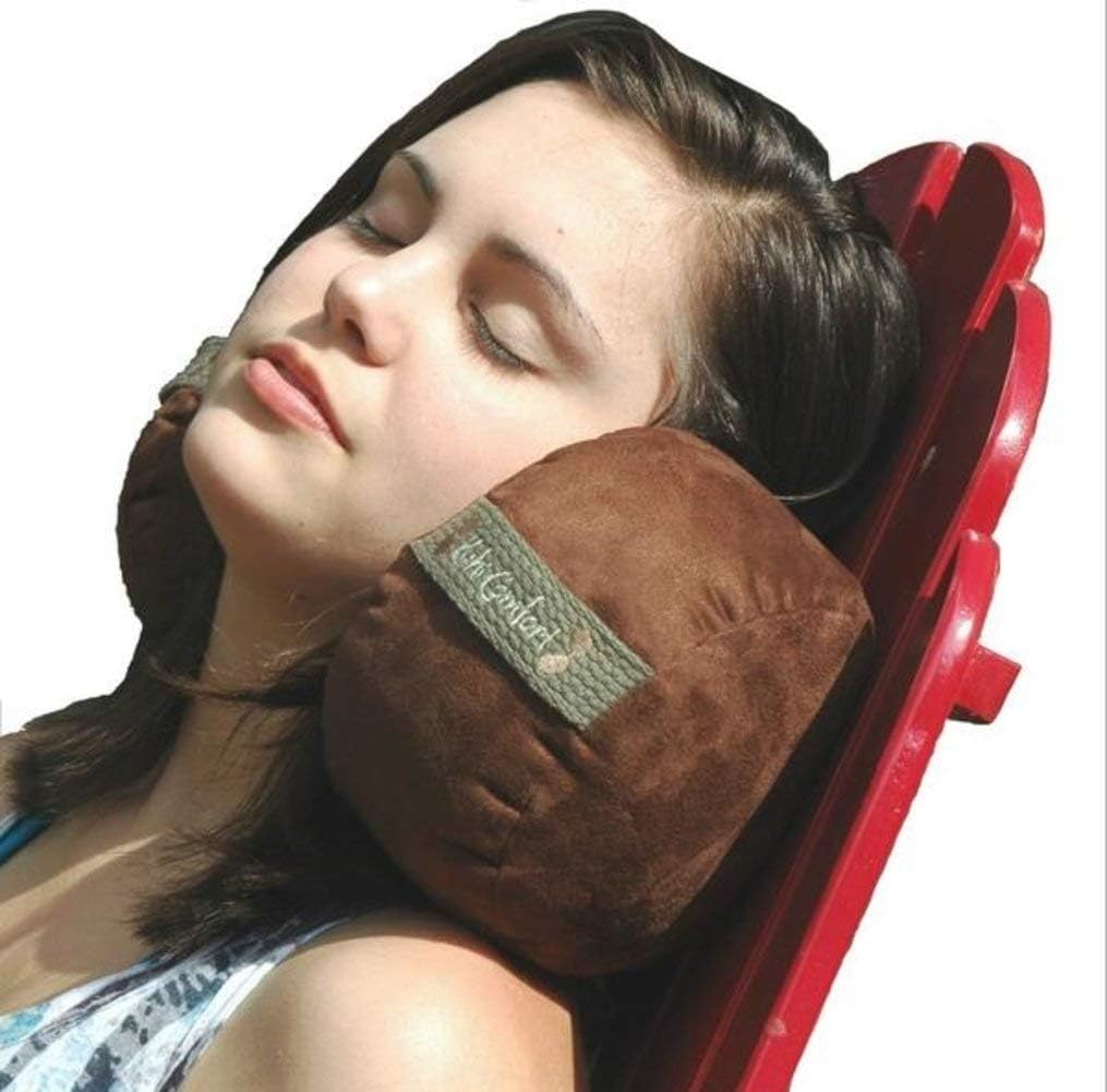 Amazon Com Kuhi Comfort Original Travel Pillow 2 Luxurious Cushions That Cradle Your Head On The Sides Comes In Convenient Carry Case Brown Clothing