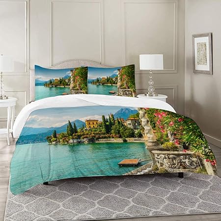 Xoxun Italy Duvet Cover Set Panoramic Landscape Of Lake Como Mountains And Clouds Digital Image Print Decorative 3 Piece Bedding Set With 2 Pillow Shams Green Blue Amazon Co Uk Kitchen Home