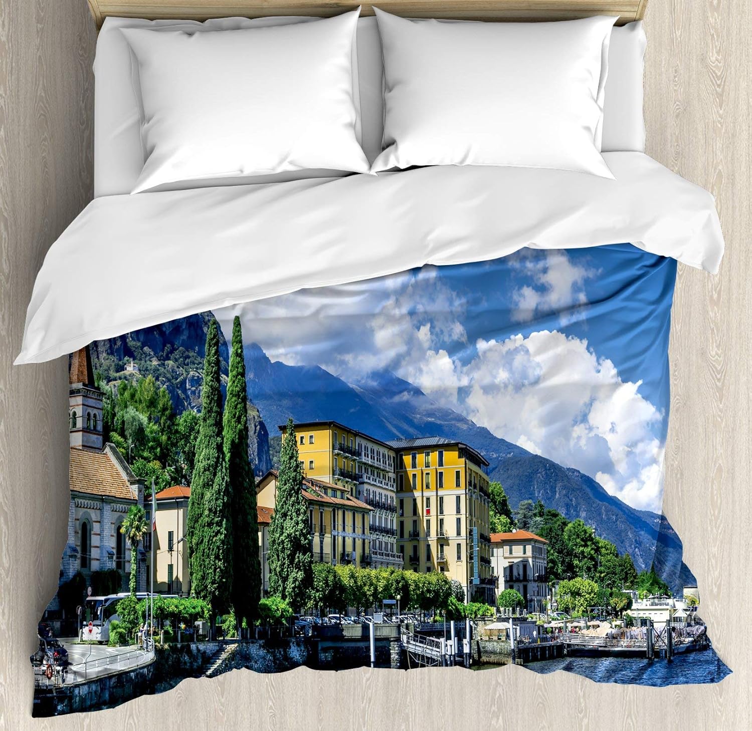 Amazon Com Comforter Bedding Set 4pcs The Panoramic Landscape Of Lake Como Mountains And Clouds Digital Image Print California King Size W100 Inch X L90 Inch 2 Pillow Sham Home Kitchen