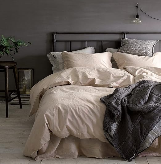 Amazon Com Eikei Washed Cotton Chambray Duvet Cover Solid Color Casual Modern Style Bedding Set Relaxed Soft Feel Natural Wrinkled Look Queen Lambskin Home Kitchen