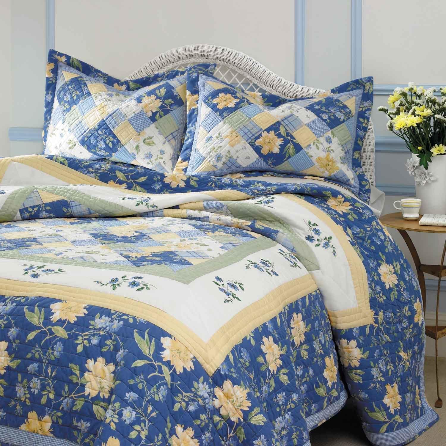 Amazon Com Laura Ashley Emilie Pieced Cotton Quilt Set Twin Home Kitchen