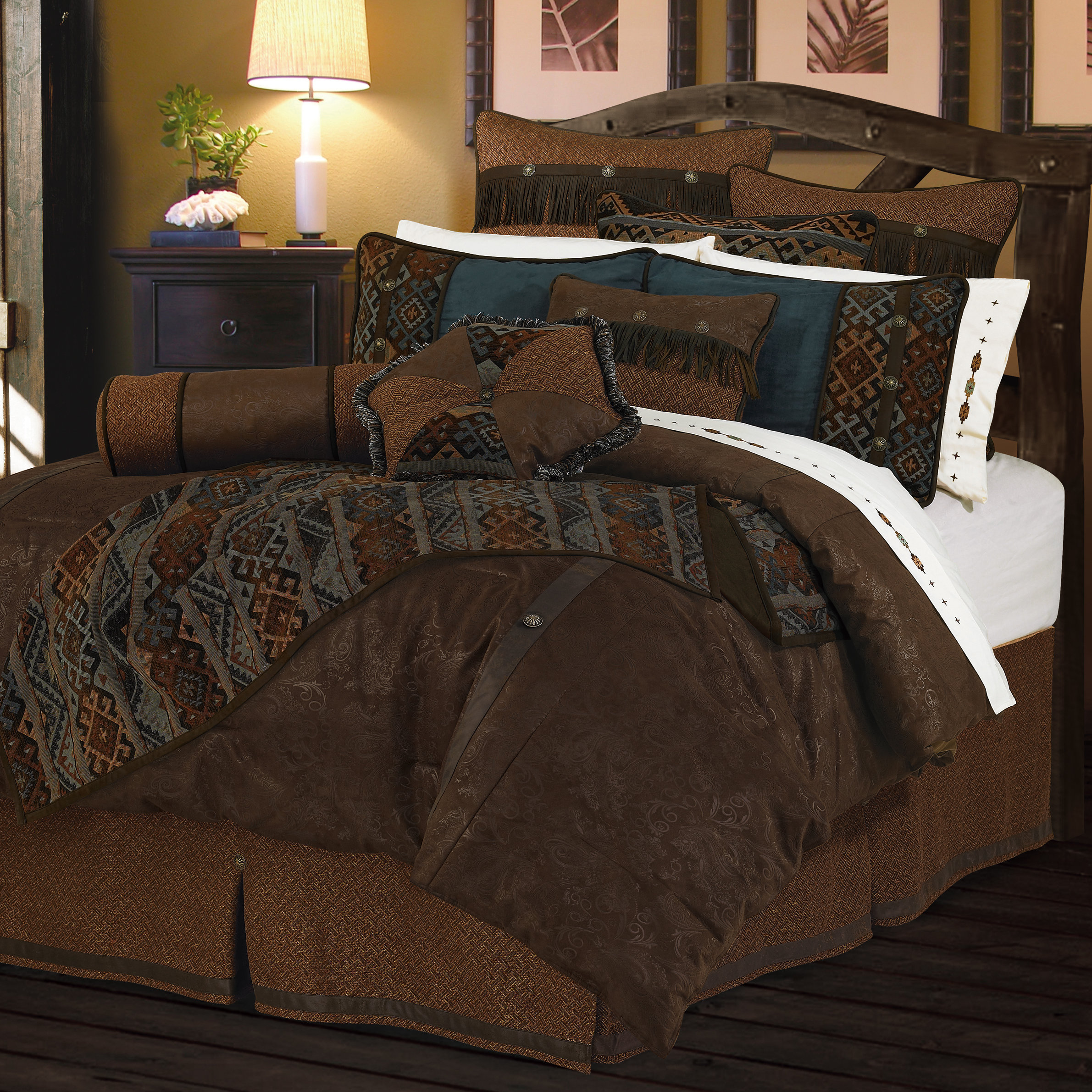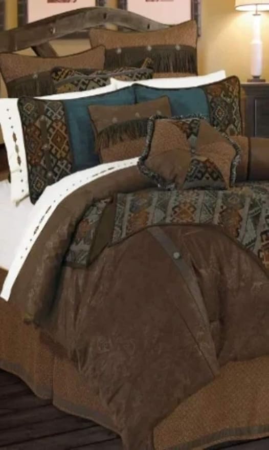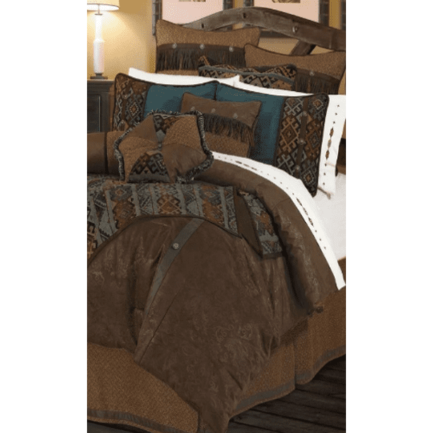 10pc Dark Brown Southwestern Faux Leather Microfiber Comforter Set Cal King Ebay