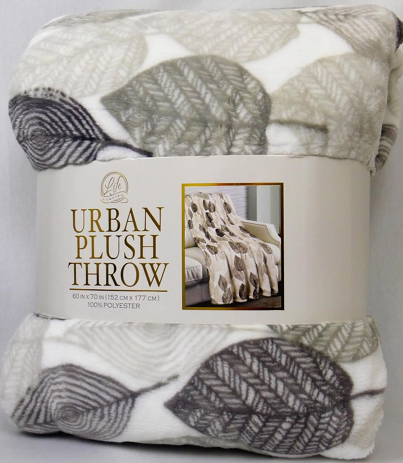 Throw Blanket White W Brown Gray Leaves 100 Polyester 60 Inch X 70 Inch Amazon Co Uk Kitchen Home