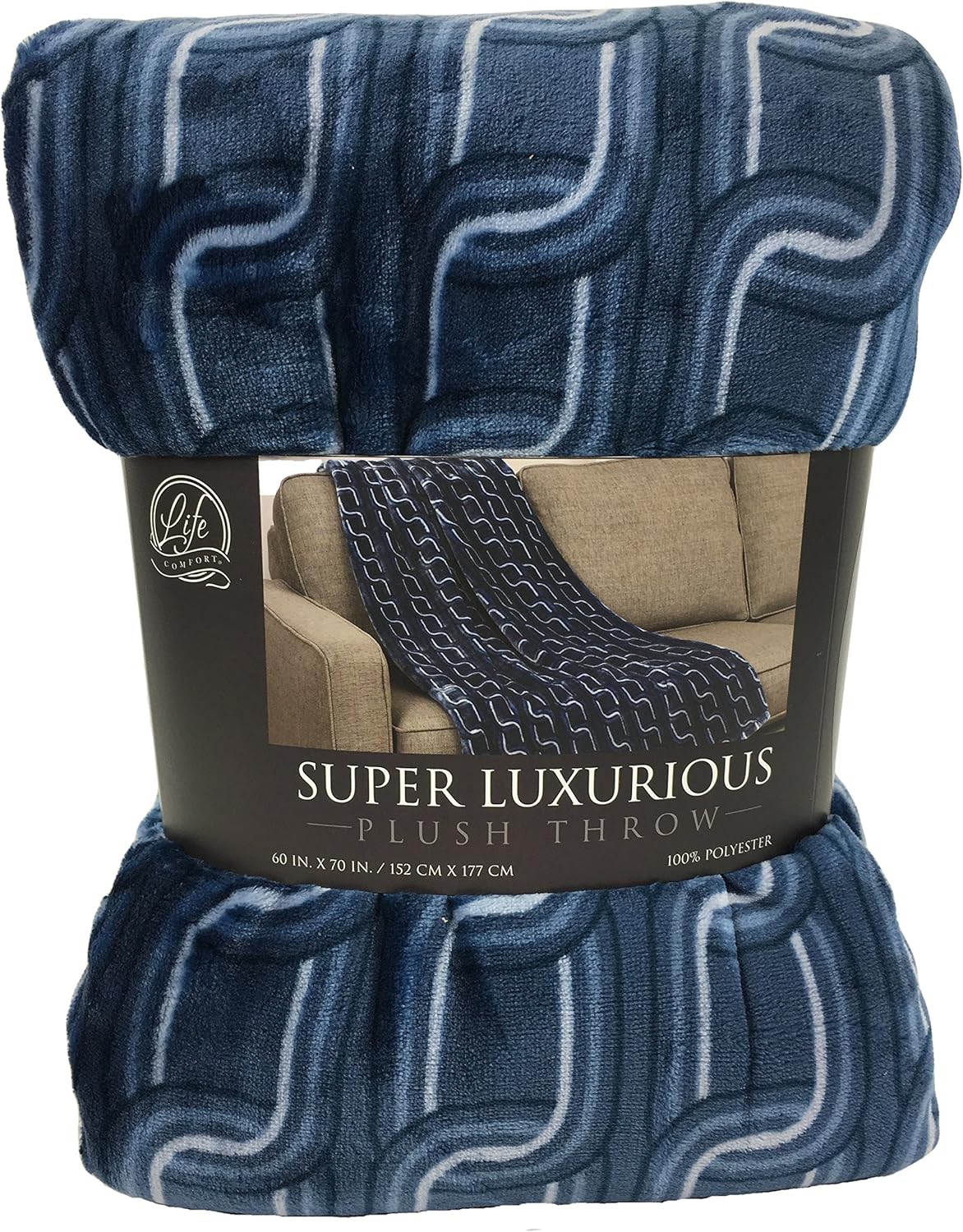 Amazon Com Life Comfort Super Luxuriousthrow Blanket 60 X 70 Inch Plush Blue Chain Pattern New Home Kitchen