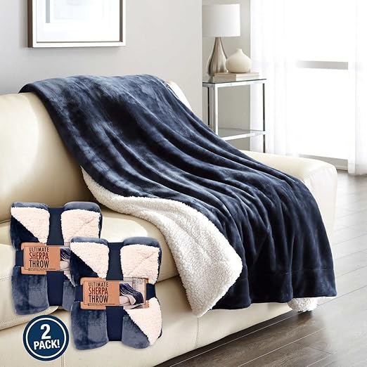 Life Comfort Ultimate Sherpa Throw 2 Pack Blue Amazon Ca Home Kitchen
