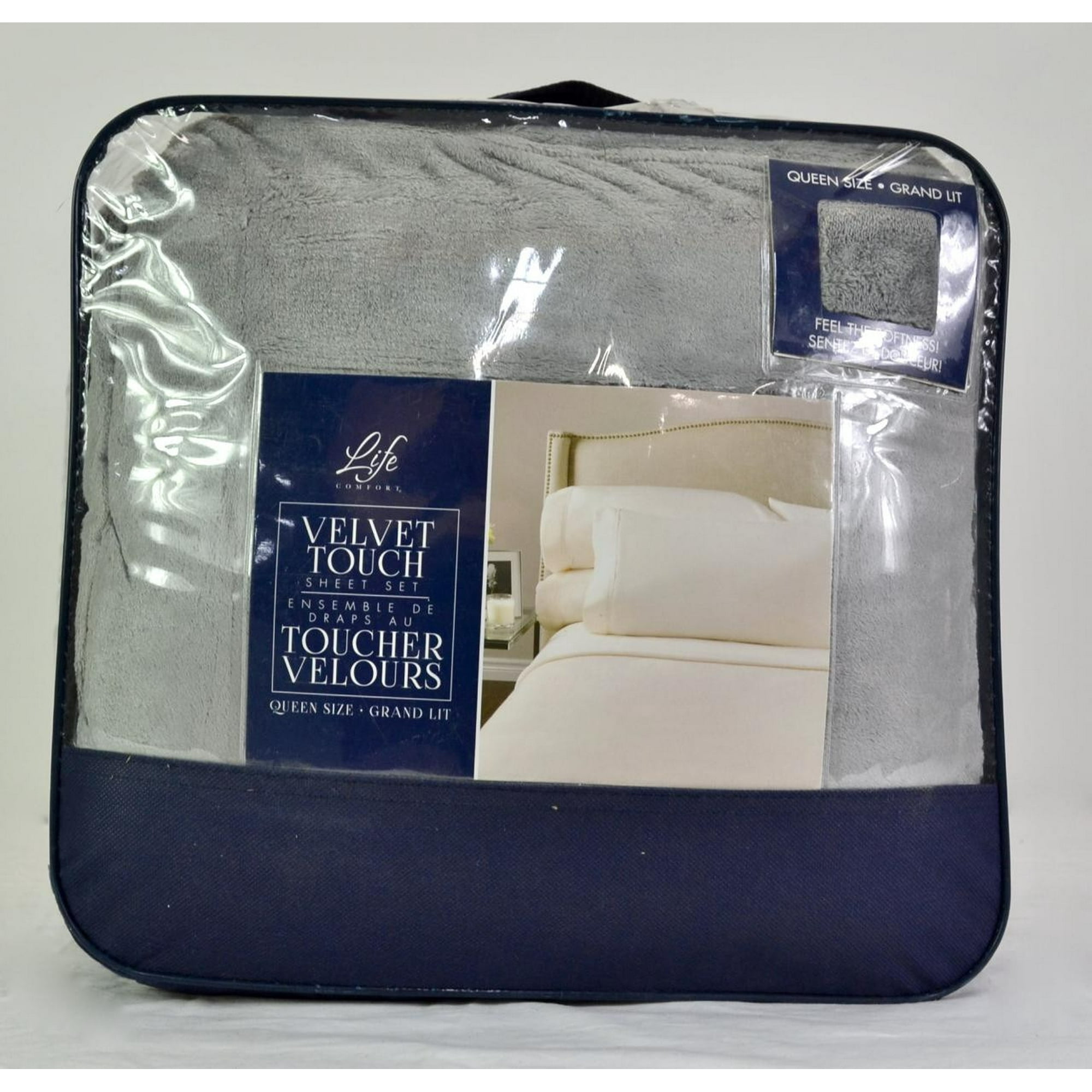 Life Comfort Velvet Touch Sheet Set Queen Light Grey Walmart Canada