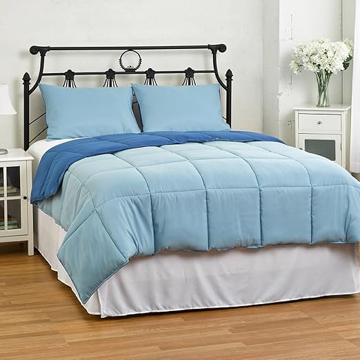 Amazon Com New Sega Home Ultra Reversible Down Alternative Comforter Full Queen Blue Light Blue Home Kitchen