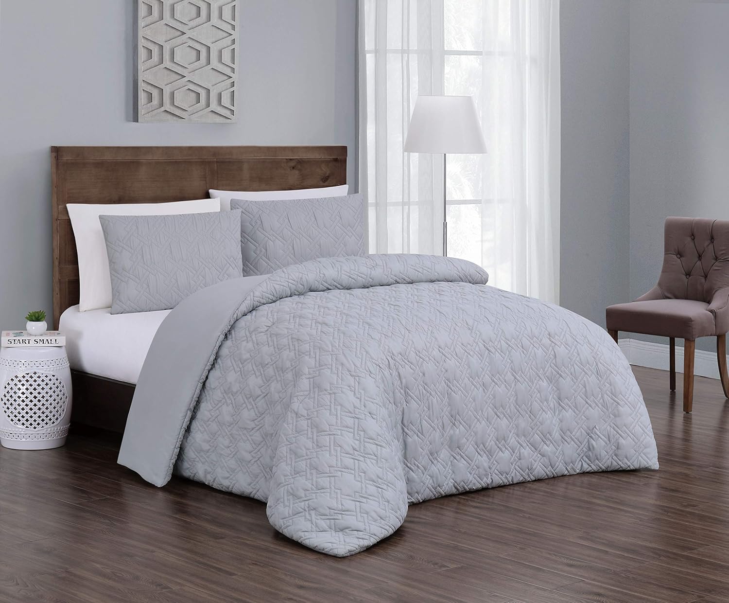 Amazon Com Geneva Home Fashion Jess Comforter Set Queen Light Grey Home Kitchen