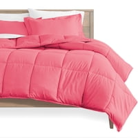 Amazon Com Downluxe Lightweight Solid Comforter Set Queen With 2 Pillow Shams 3 Piece Set Pink And Grey Down Alternative Reversible Comforter Home Kitchen