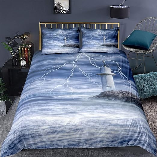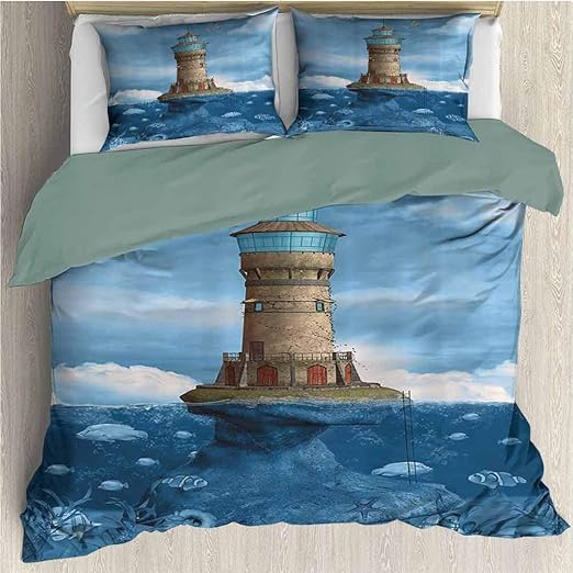 Amazon Com Ozinci 3d Nautical Bedding Set Lighthouse Themed Quilt Duvet Cover Set Kids Bed Set Single Twin Size Comforter Included 5 Pieces Kitchen Dining