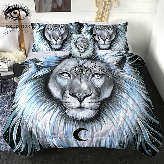 Amazon Com Lion Galaxy By Pixie Cold Bedding Comforter Lion Queen Comforter Set Moon Dream Catcher 3d Animals Blue Grey Bedding Sets With 2 Pillow Shams 1 Cushion Cover 4 Pieces Home Kitchen