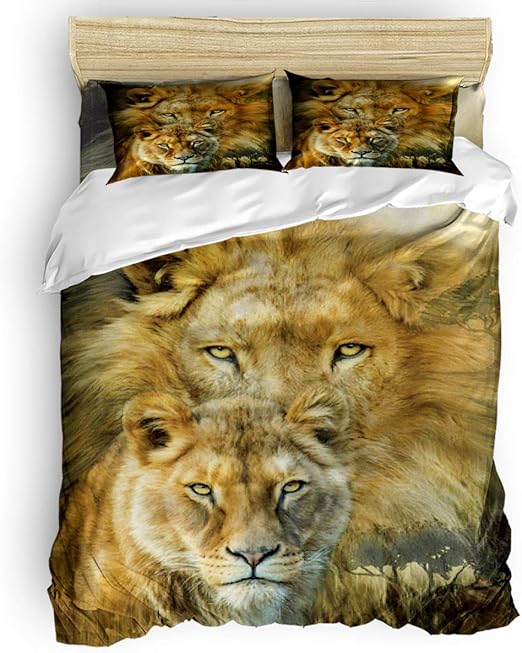 Amazon Com 4 Piece Bedding Sets Couple Lion Comforter Set Duvet Cover Bed Sheets Pillow Cases For Childrens Kids Teens Adults California King Size Yellow Animals Home Kitchen