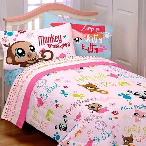 Amazon Com Littlest Pet Shop Bedding Set Comforter And Sheets 4 Pc Twin Bed In A Bag Home Kitchen
