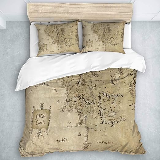 Amazon Com Moastory 3 Piece Duvet Cover Set Lord Of The Ring Map Of Middle Earth Modern Soft Bedding Set Queen Size Home Kitchen