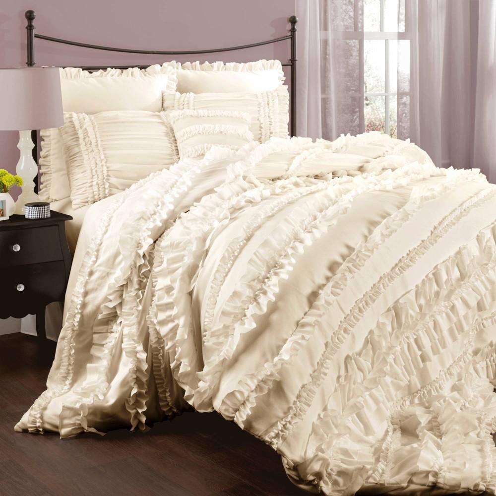 Ruffle Skirt Bedspread Neutral 3pc Set Full Lush Decor 16t003652