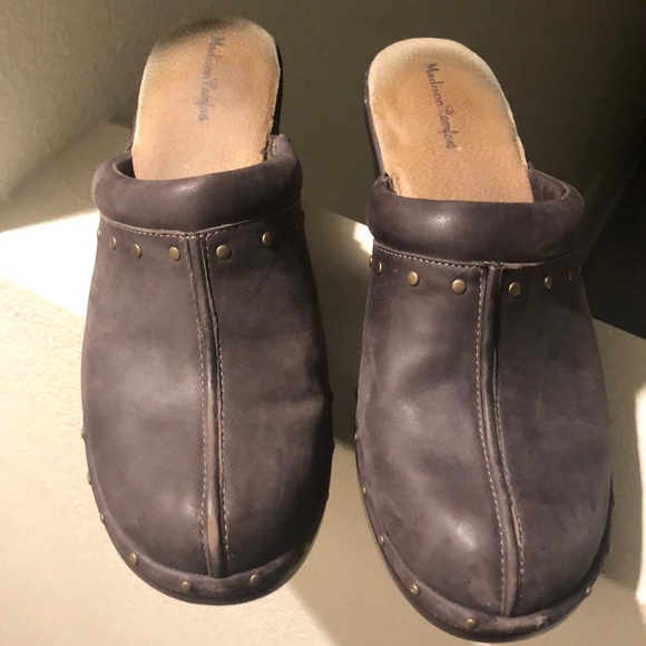 Madison Comfort Shoes Brown Leather Clogs With Gold Nailhead Accents Poshmark