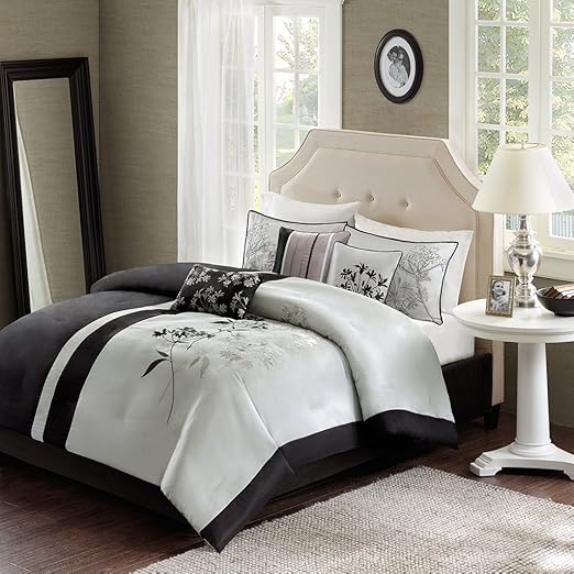 Amazon Com Madison Park 7 Piece Kendall Comforter Set King Black Kitchen Dining