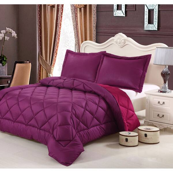 Shop Hci Hand Crafted Brushed Velvet Down Alternative Reversible Magenta And Mulberry Queen Comforter Set Overstock 10884470