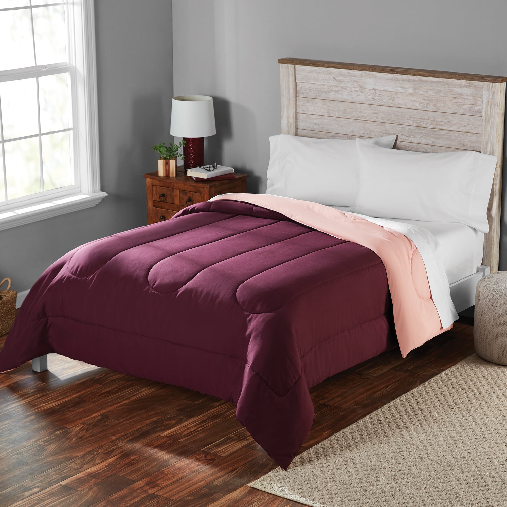 Amazon Com Queen Size Mainstays Reversible Comforter Bedding Soft Brush Microfiber Pink Purple Kitchen Dining