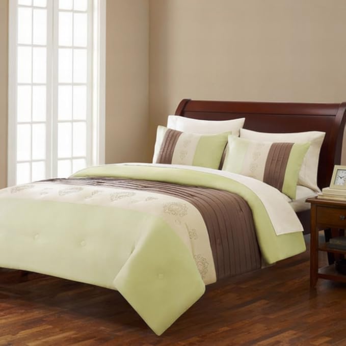 Amazon Com Mainstay Twin Brown Green Microfiber Comforter And Sham Set 2 Piece Home Kitchen
