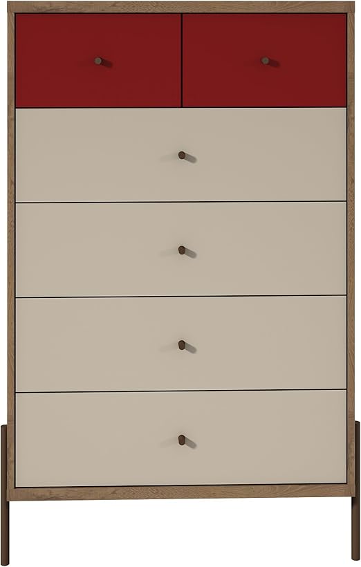 Amazon Com Manhattan Comfort Joy Series Freestanding Tall Bedroom Dresser Red Off White Furniture Decor