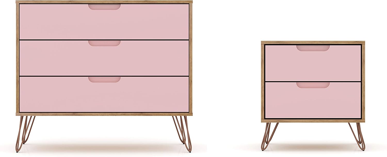 Amazon Com Manhattan Comfort Rockefeller Mid Century Modern 3 Drawer Bedroom Dresser With Nightstand Set Of 2 Nature Rose Pink Furniture Decor