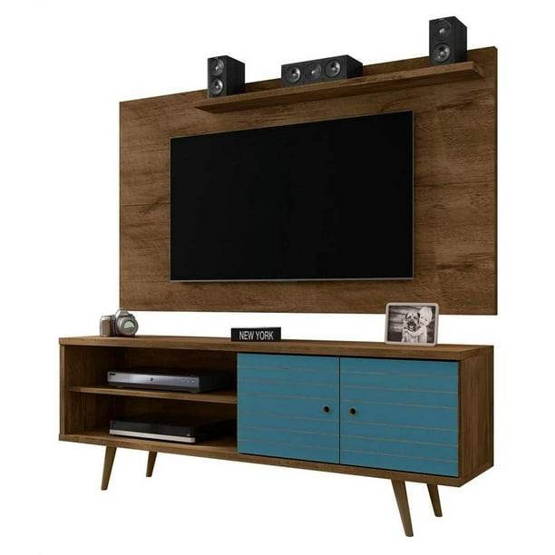 Amazon Com Manhattan Comfort Liberty Tv Stand Brown Aqua Blue Furniture Decor
