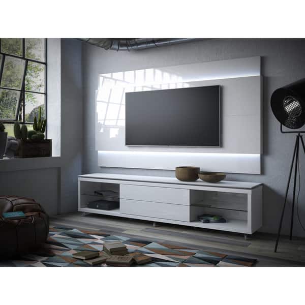 Manhattan Comfort City 72 In White Gloss Composite Floating Entertainment Center Fits Tvs Up To 70 In With Wall Panel 25152 The Home Depot