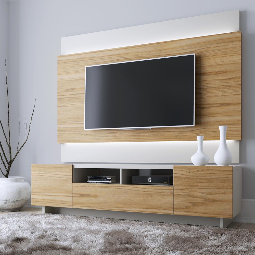 Manhattan Comfort Brill Cinnamon And Off White 71 06 2 Piece Tv Stand And Tv Panel 400251 The Home Depot