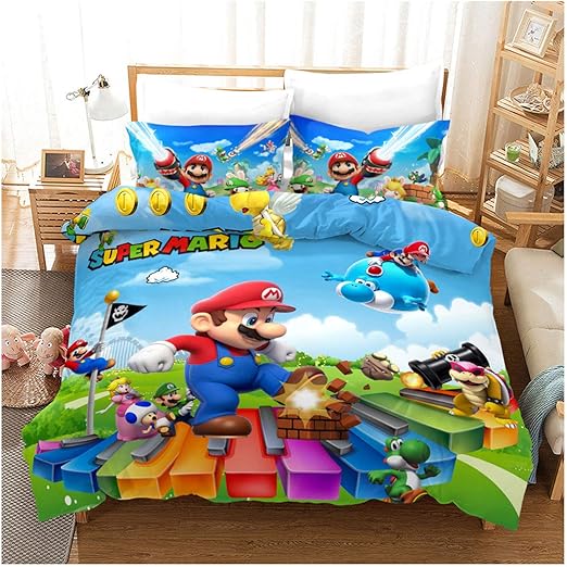 Amazon Com Supermario Bros Kids Soft Bedding Sheets Set Super Mario 3 Piece Twin Size A 135x200cm 2 Pcs Home Kitchen