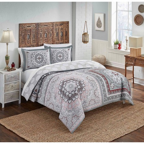 Boho Boutique Full Queen 3pc Surya Reversible Comforter Sham Set Mauve Target