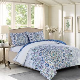 Amazon Com Comfort Spaces Cs10 0912 Cara 9 Piece Comforter Set All Season Microfiber Printed Medallion Bedding And Sheet With Two Side Pockets Queen Blue Home Kitchen