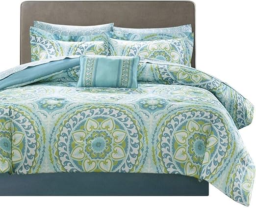 Amazon Com Hnu 9 Piece Modern Medallion Comforter King All Over Aqua Blue Oversize Medallion Pattern Bed In A Bag Comforter Microfiber All Season Cozy Comfy Bedding Sheets Included Luxury Bed Decor Home Kitchen