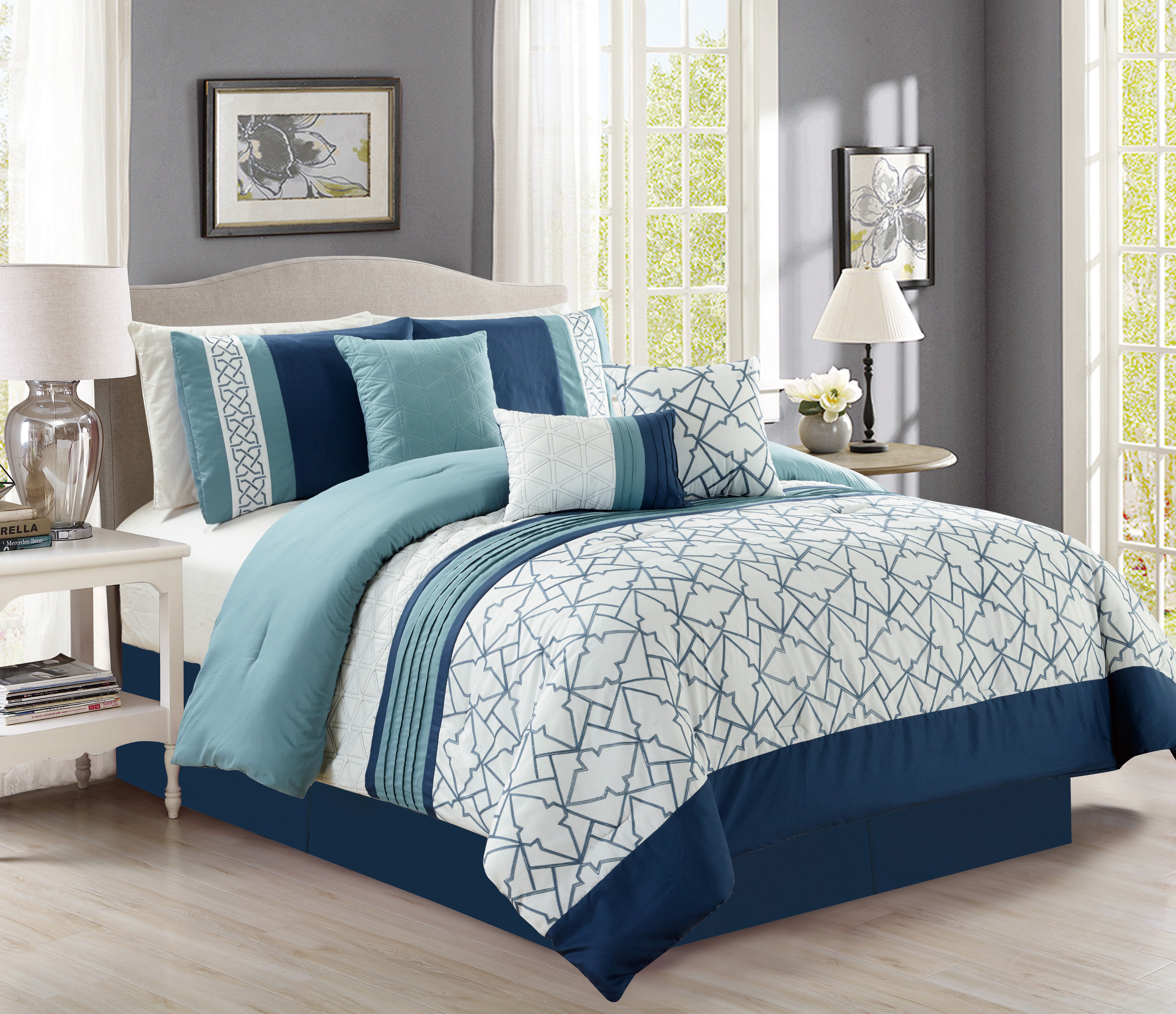 7 Piece Bed In A Bag Full Xl Comforter Set Grey Sheet Set Light Grey Walmart Com Walmart Com