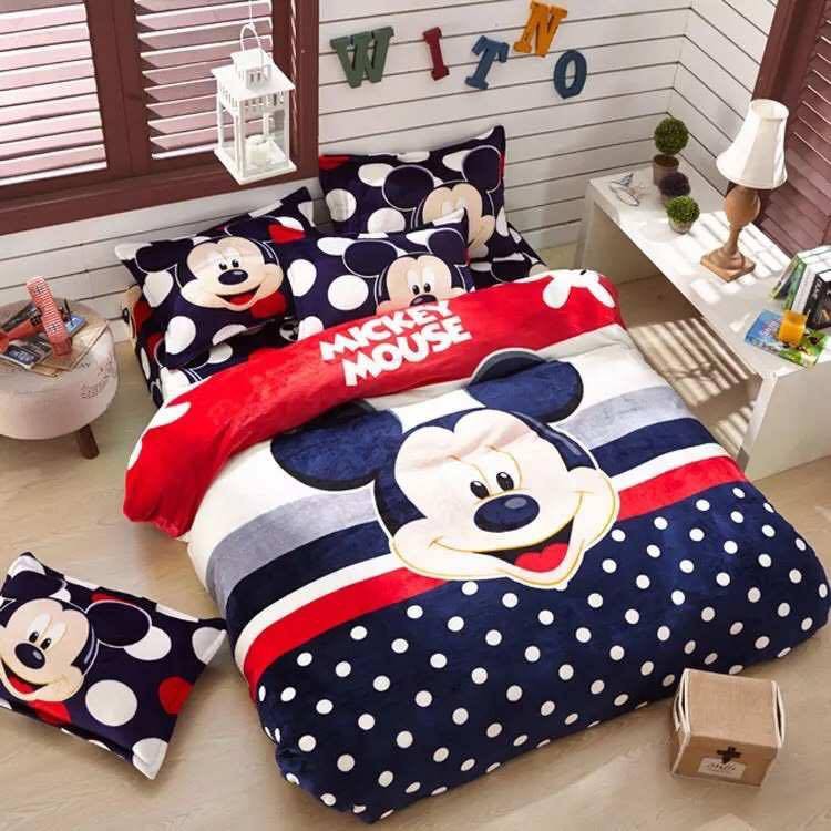 Disney Flannel Fleece Mickey Mouse Comforter Bedding Set Queen Size Quilt Cover Twin Kids 3d Full Bed Linen Soft Coverlet Girls Bedding Sets Aliexpress