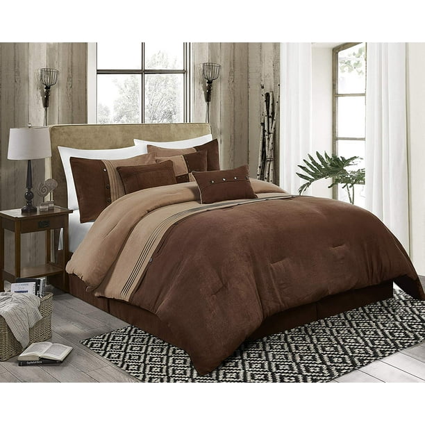 Lorient Home 5 Piece Micro Suede Comforter Set Full Queen Chocolate Taupe