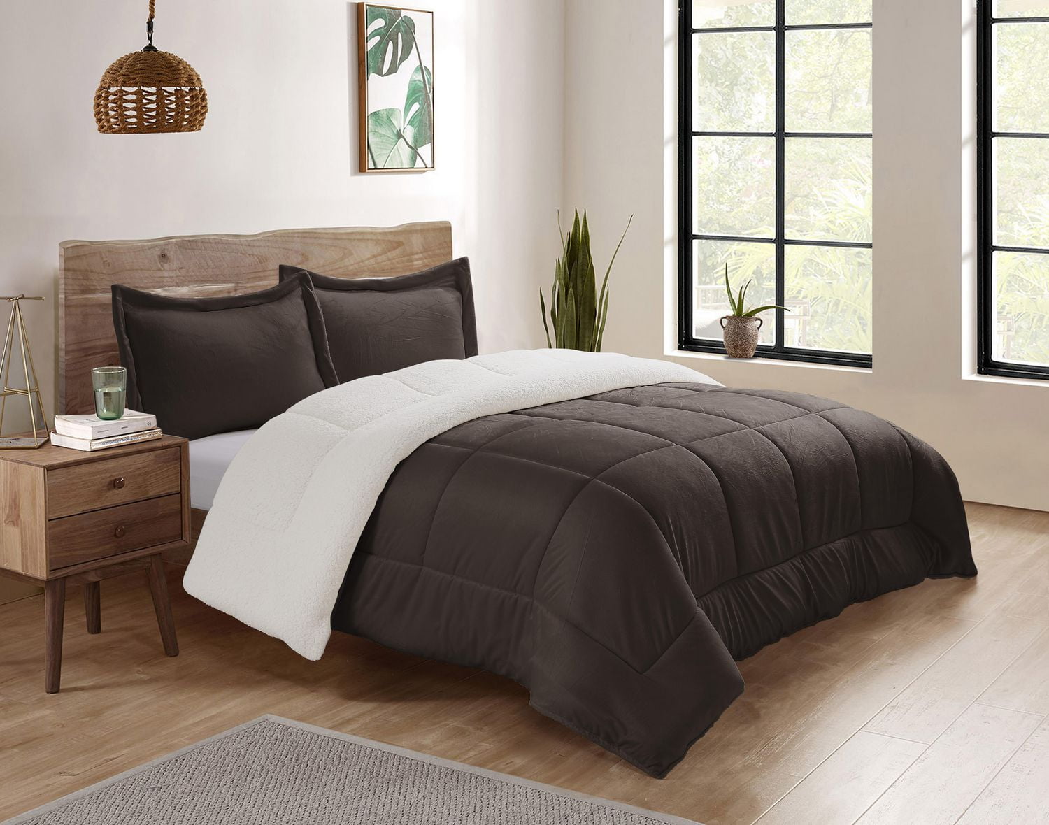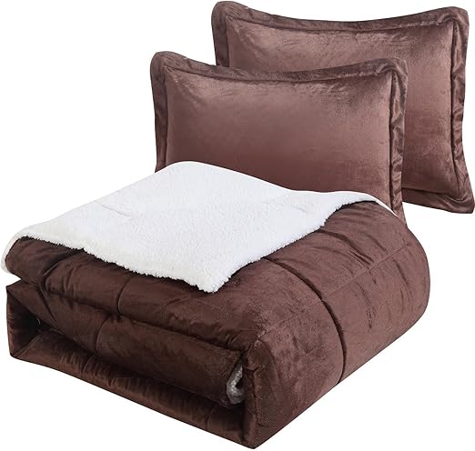 Amazon Com Vcny Home Micro Mink Reversible 3 Piece Warm Sherpa Comforter Set King Chocolate Home Kitchen