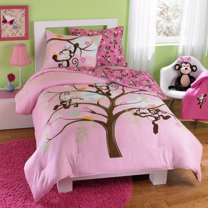 Pink Monkey Reversible Hypoallergenic Kids Complete Bed In A Bag Comforter Set Ebay